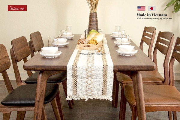 Chất liệu gỗ óc chó tự nhiên, nhẵn mịn: Bộ sản phẩm được làm từ gỗ óc chó tự nhiên đã qua tẩm sấy chống mối mọt, gỗ được sơn màu tự nhiên, bóng mịn, thơm mùi gỗ. Mỗi chiếc ghế đều được bọc đệm/ bọc da/ hoặc mặt gỗ với kỹ thuật và tay nghề cao trong nhà máy. Đặc biệt, các cạnh bàn đều được mài tròn nhẵn, không có tính sát thương ngay cả khi những đứa trẻ có đùa nghịch mà vô tình va phải, rất an toàn.