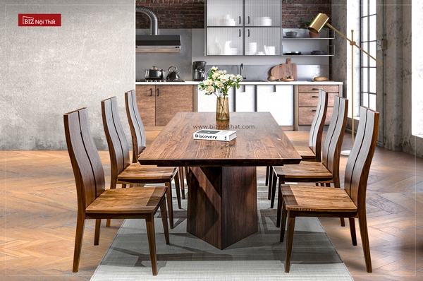 Bàn ăn gỗ óc chó xuất khẩu Mỹ AXIO là một trong những mẫu bàn ăn đơn giản nhưng không kém phần tinh tế sẽ giúp phòng ăn của bạn không chỉ ấm cúng hơn mà còn là điểm nhấn cho ngôi nhà đẹp và cá tính theo phong cách của chủ căn nhà. Màu sắc bàn ăn dễ dàng phù hợp, đồng điệu với nhiều phong cách nội thất khác nhau.