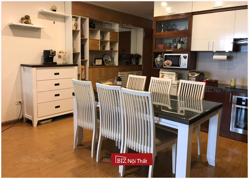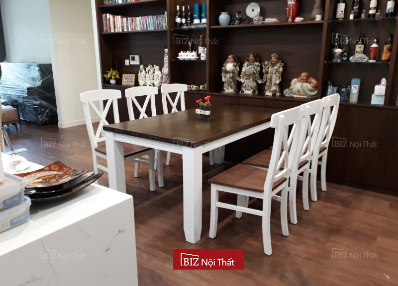 Bàn có kiểu dáng cao với kích thước L1800xD950xH780mm với màu trắng thanh lịch, cùng thiết kế đơn giản, phù hợp với mọi không gian nội thất của phòng ăn có không gian rộng & đẳng cấp