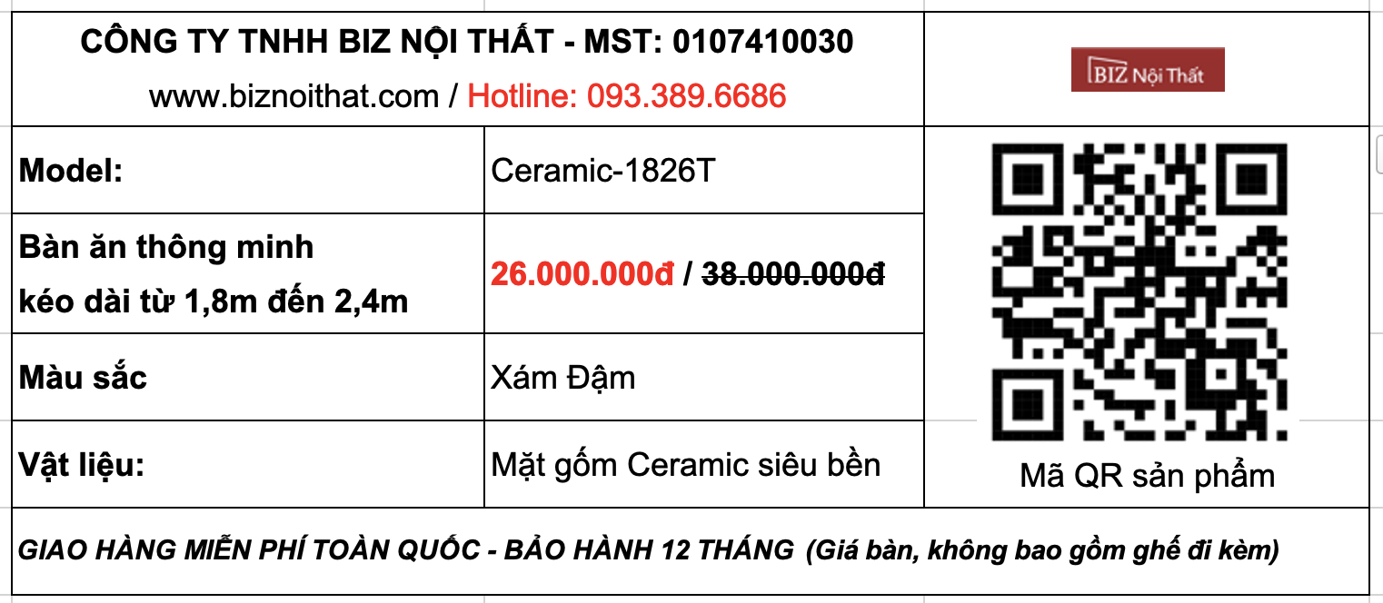 Bàn ăn thông minh mặt đá Ceramic là một những sản phẩm thuộc dòng sản phẩm nội thất kim loại cung cấp bởi Biz Nội Thất. Sản phẩm mang tính thẩm mỹ cao sẽ giúp phòng khách của bạn không chỉ ấm cúng hơn mà còn là điểm nhấn đẳng cấp cho ngôi nhà đẹp và cá tính theo phong cách của chủ căn nhà. Màu sắc bàn ăn dễ dàng phù hợp, đồng điệu với nhiều phong cách nội thất khác nhau.