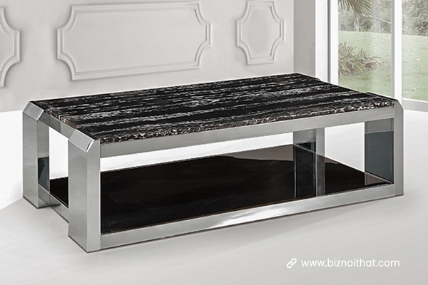 Bàn Trà Mặt Đá BizNoiThat chân inox CT-1724 có kích thước 1200 x 700 x 430 mm. Sản phẩm thiết kế hình chữ nhật đầy phong cách mang tính thẩm mỹ cao, màu sắc trang nhã