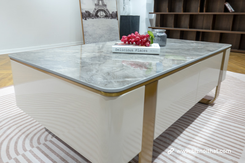 Màu Sắc: Mặt đá màu Xám Grey, khung kim loại sơn tĩnh điện màu gold vàng