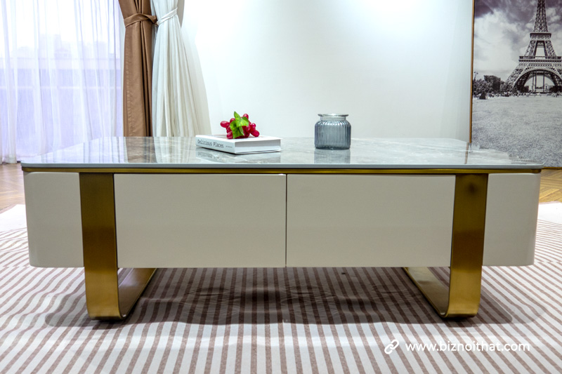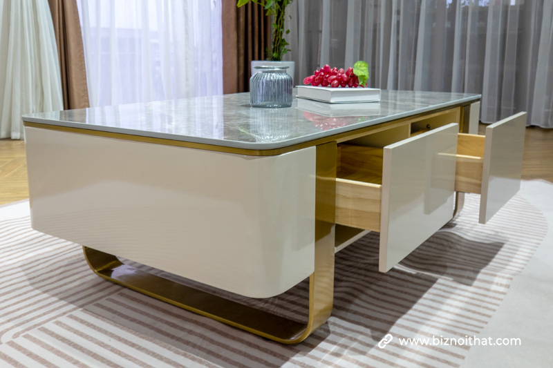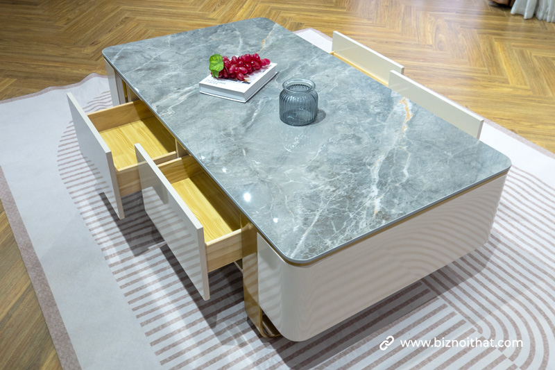 Bàn Trà Mặt Đá Ceramic C8523 gồm 4 ngăn kéo màu stone được thiết kế hình chữ nhật đầy phong cách mang tính thẩm mỹ cao, màu sắc trang nhã, kiểu dáng đơn giản hiện đại. Đây sẽ là điểm nhấn nổi bật cho phòng khách nhà bạn.