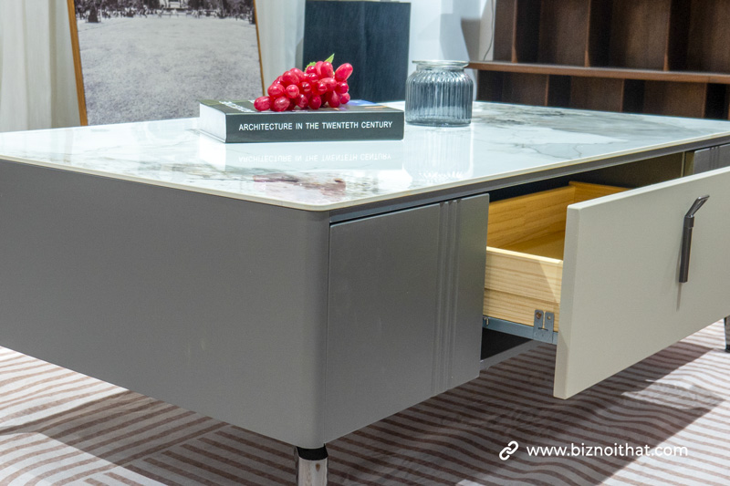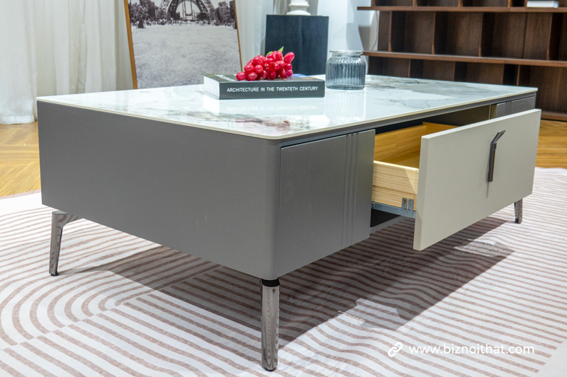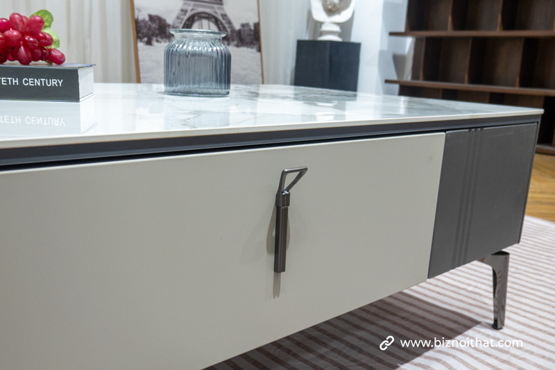 Bàn Trà Mặt Đá Ceramic C8525 màu Pandora gồm 2 ngăn kéo được thiết kế hình chữ nhật đầy phong cách mang tính thẩm mỹ cao, màu sắc trang nhã, kiểu dáng đơn giản hiện đại, phong cách Bắc Âu. Đây sẽ là điểm nhấn nổi bật cho phòng khách nhà bạn.