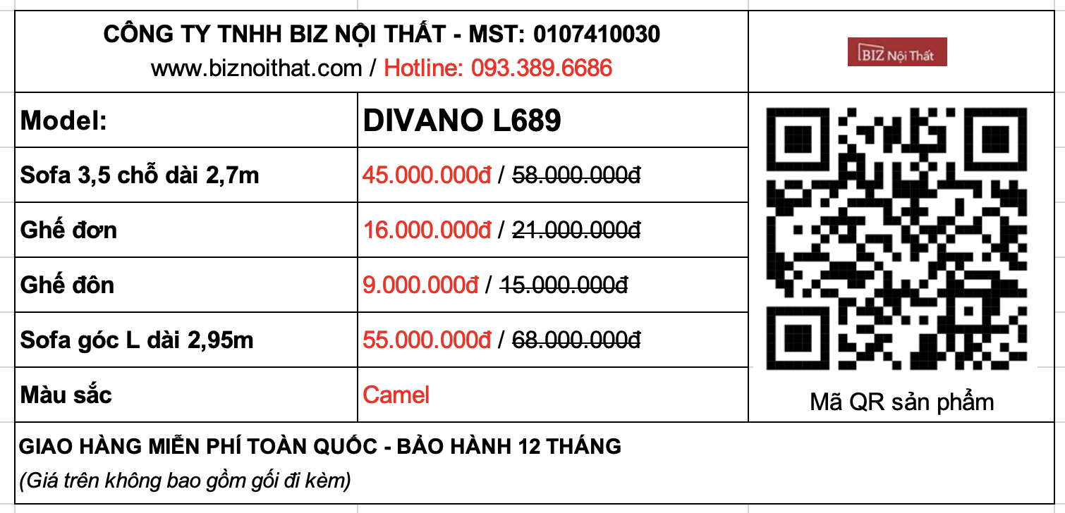 Nguồn gốc: DIVANO, Italia - thương hiệu sản xuất Sofa phong cách hàng đầu Italia, được thiết kế, nhập khẩu chính hãng và phân phối độc quyền bởi BIZ NỘI THẤT