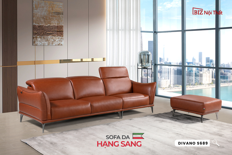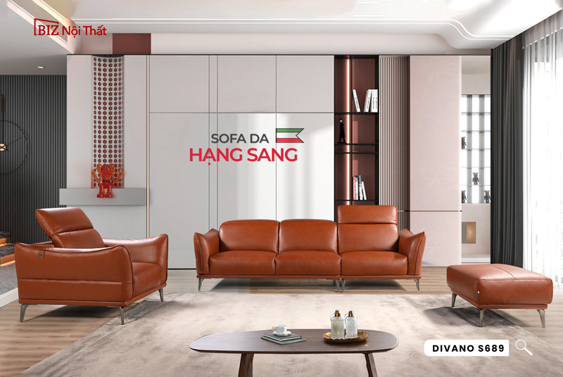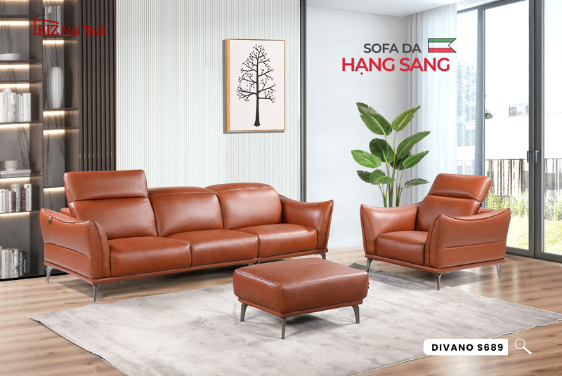 Bộ Ghế Sofa Văng chất liệu da bò Ý nhập khẩu Divano S-689 màu Camel sử dụng chất liệu da bò thương hiệu GM đến từ Italia với chất lượng & độ bền cực cao. Bền Đẹp mãi theo thời gian. Da bò thật cực dày có tính năng ít thấm nước nên có chất lượng và khả năng chống bụi cao.