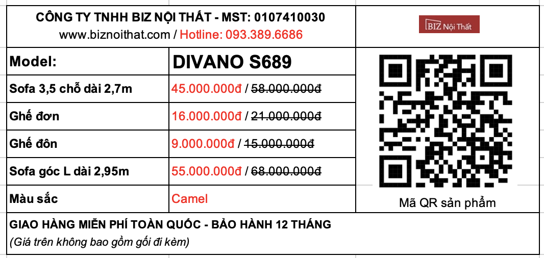Nguồn gốc: DIVANO, Italia - thương hiệu sản xuất Sofa phong cách hàng đầu Italia, được thiết kế, nhập khẩu chính hãng và phân phối độc quyền bởi BIZ NỘI THẤT