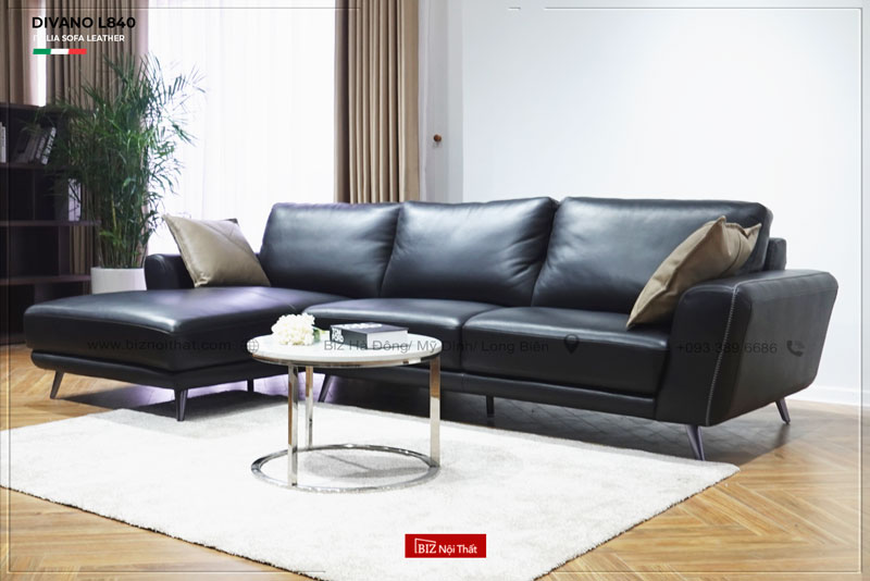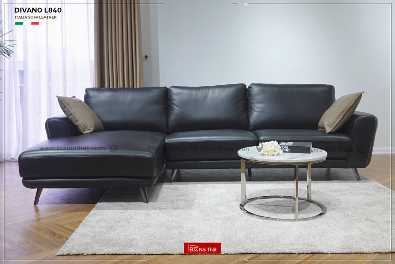 Bộ Sofa chất liệu da bò Ý Divano L-840 sử dụng chất liệu da bò thương hiệu GM đến từ Italia với chất lượng & độ bền cực cao. Bền Đẹp mãi theo thời gian. Da bò thật cực dày có tính năng ít thấm nước nên có chất lượng và khả năng chống bụi cao.