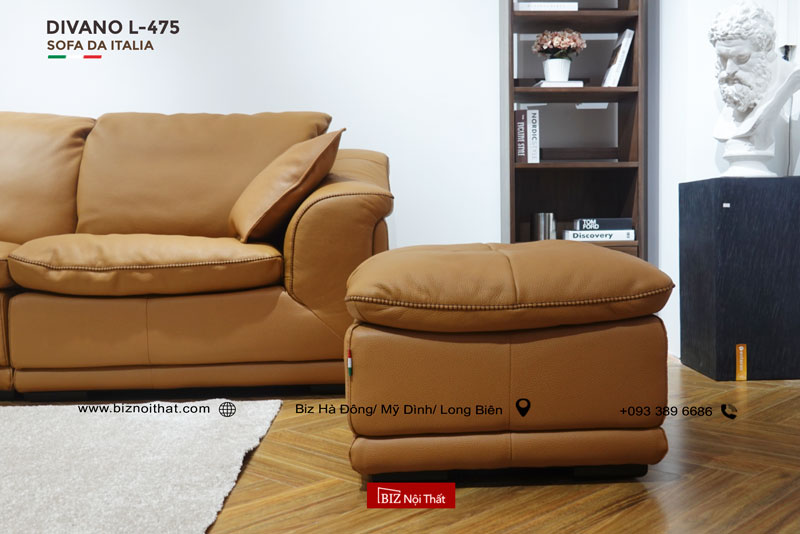 Sofa da thật L-475A kết hợp với Ghế đôn Sofa taọ nên 1 Phòng Khách Hiện Đại Sang Trọng Đẳng Cấp