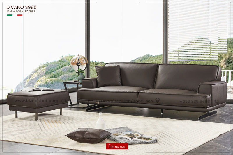 Bộ Sofa góc chất liệu da bò Ý Divano L-985 sử dụng chất liệu da bò thương hiệu GM đến từ Italia với chất lượng & độ bền cực cao. Bền Đẹp mãi theo thời gian. Da bò thật cực dày có tính năng ít thấm nước nên có chất lượng và khả năng chống bụi cao.