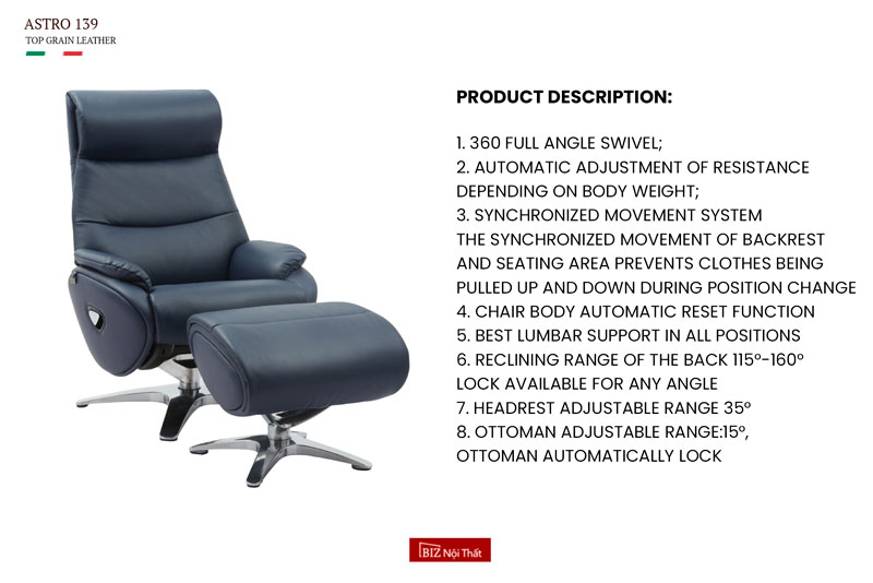 Ghế Sofa Thư Giãn Thông Minh Astro thiết kế độc đáo mang tính thẩm mỹ cao, phong cách Italian, đẳng cấp khi trang trí ở bất kỳ không gian nào.