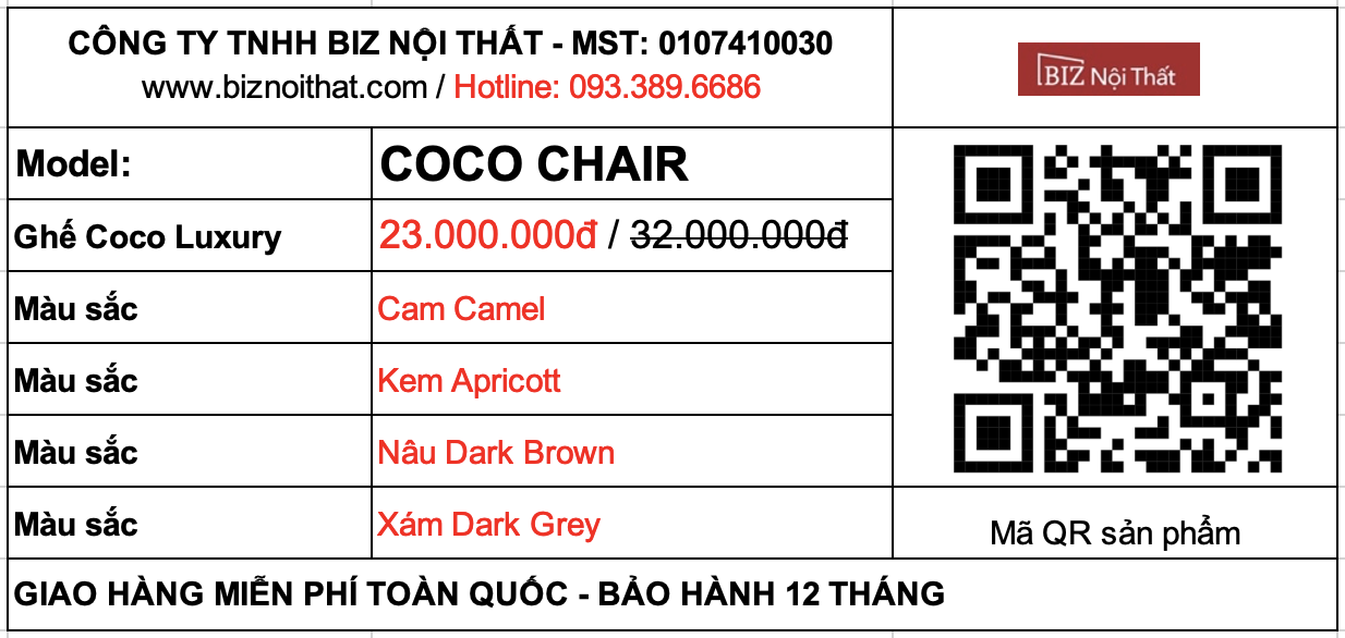 Ghế Coco mang phong cách hiện đại với màu Camel siêu hot
