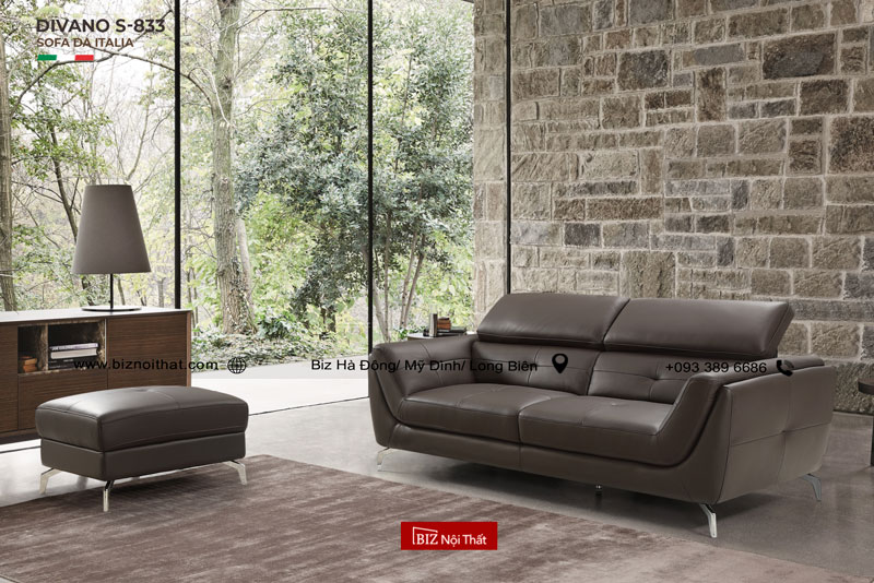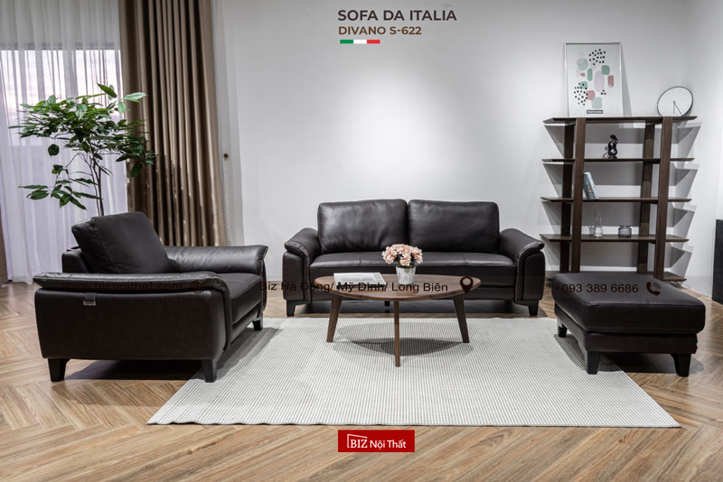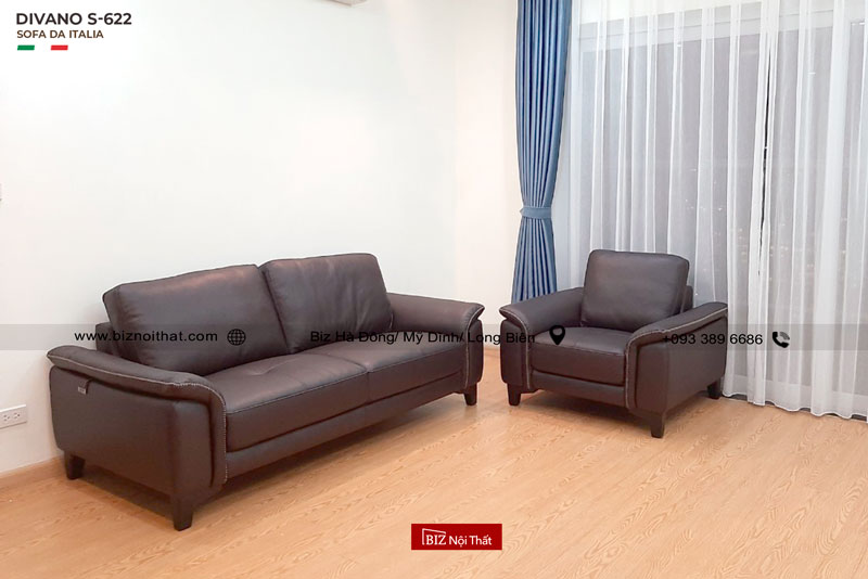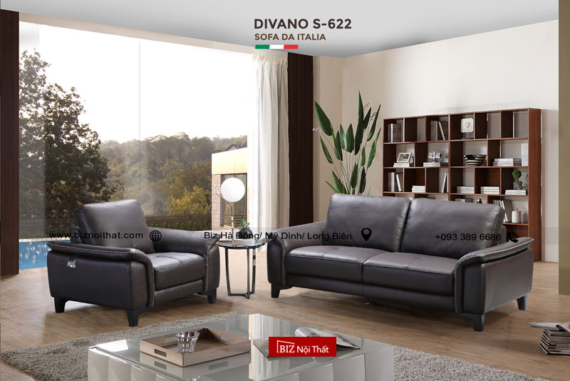 7. Bộ Sofa văng da bò Italia Divano S-622: Bộ Sofa da thật Divano S-622 nhập khẩu trực tiếp bởi Biz Nội Thất là một bộ sofa có kích thước nhỏ nhắn, rất phù hợp với căn phòng có kích thước vừa và nhỏ. Sofa S-622, có đủ các yếu tố của 1 bộ sofa hiện đại