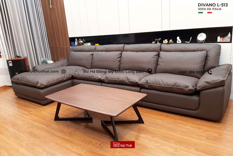 13. Bộ Sofa chất liệu da bò Ý nhập khẩu Divano L-513: Thiết kế Thông Minh thành nhiều Module, có thể nối dài tuỳ ý. Dài 3m/ 3,7m/ 4,4m...