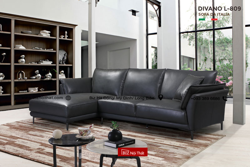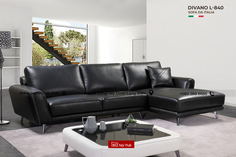 15. Bộ Sofa chất liệu da bò Ý nhập khẩu Divano L-840 màu đen dài 2,91m