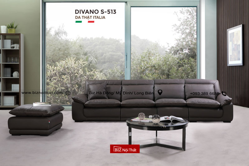 5. Bộ Sofa Văng chất liệu da bò Ý Divano S-727: Nguồn gốc - DIVANO, Italia - Thương hiệu sản xuất Sofa phong cách hàng đầu Italia, được thiết kế, nhập khẩu chính hãng và phân phối độc quyền bởi BIZ NỘI THẤT
