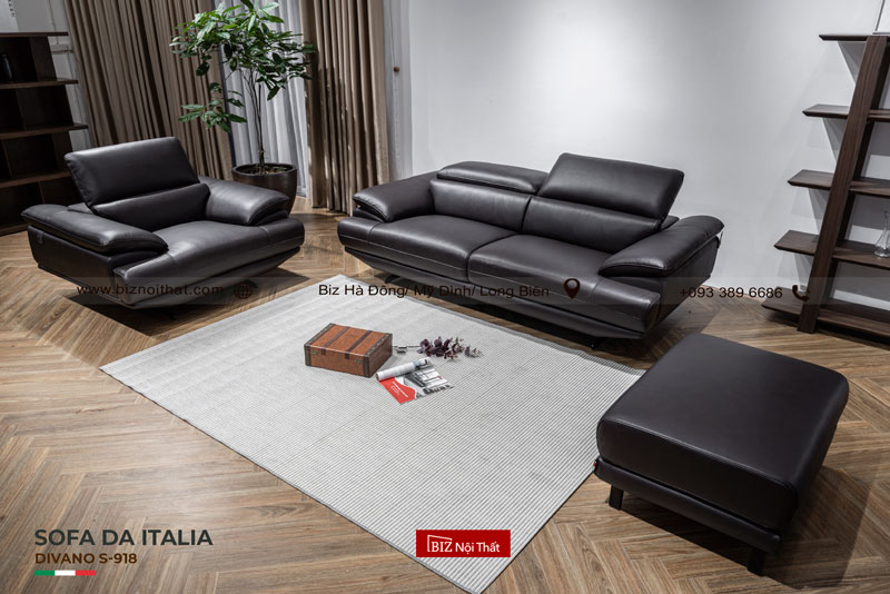 Sofa da thật S-918 được thiết kế phong cách hiện đại, rất phù hợp với không gian phòng khách hiện đại sang trọng.