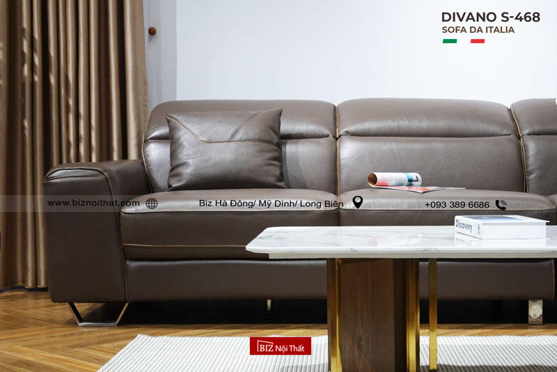 3. Sofa da văng 3 chỗ chất liệu da bò Ý Divano S-468: Sử dụng da thật cho toàn bộ bề mặt sản phẩm. Da Top Leather dày 1,3-1,5mm, Da thật chọn từ lưng da bò đực. Khung gỗ tự nhiên. Đệm mút ngồi cao cấp.