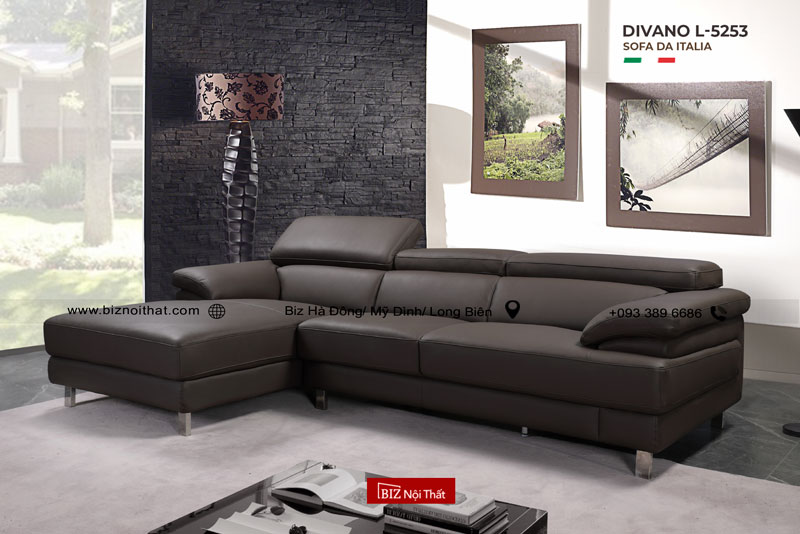 11. Bộ Sofa chất liệu da bò Ý nhập khẩu Divano L-5253 màu nâu
